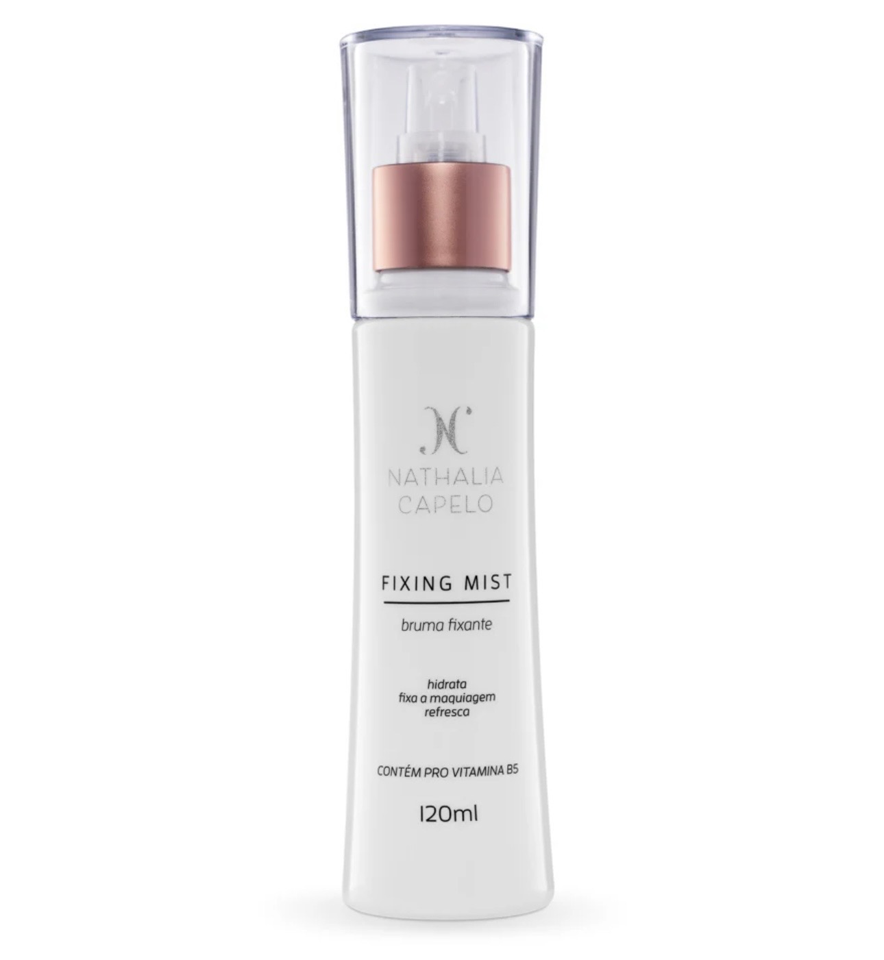 Nossa Bruma Facial Fixante é um verdadeiro cuidado em spray. Sem álcool e formulada com ativos hidratantes como D-Pantenol, Extrato de Algas Marinhas e Pepino, ela refresca, hidrata e revitaliza a pele, promovendo um acabamento viçoso e natural, sem deixar a maquiagem com aspecto seco.
