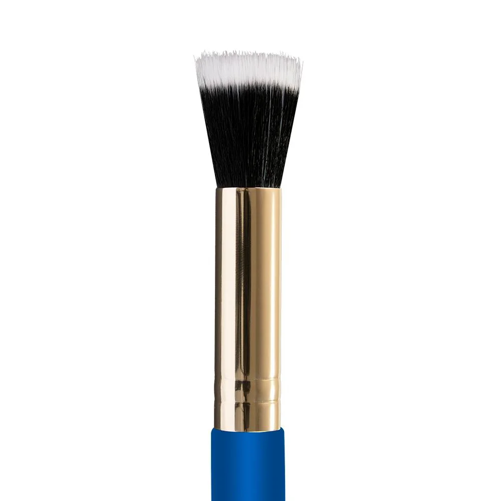 Compacto e preciso, é perfeito para áreas menores do rosto, como ao redor dos olhos e nariz, oferecendo maior controle na aplicação. Suas cerdas macias de alta qualidade deslizam facilmente sobre a pele, resultando em acabamento profissional em qualquer produção.